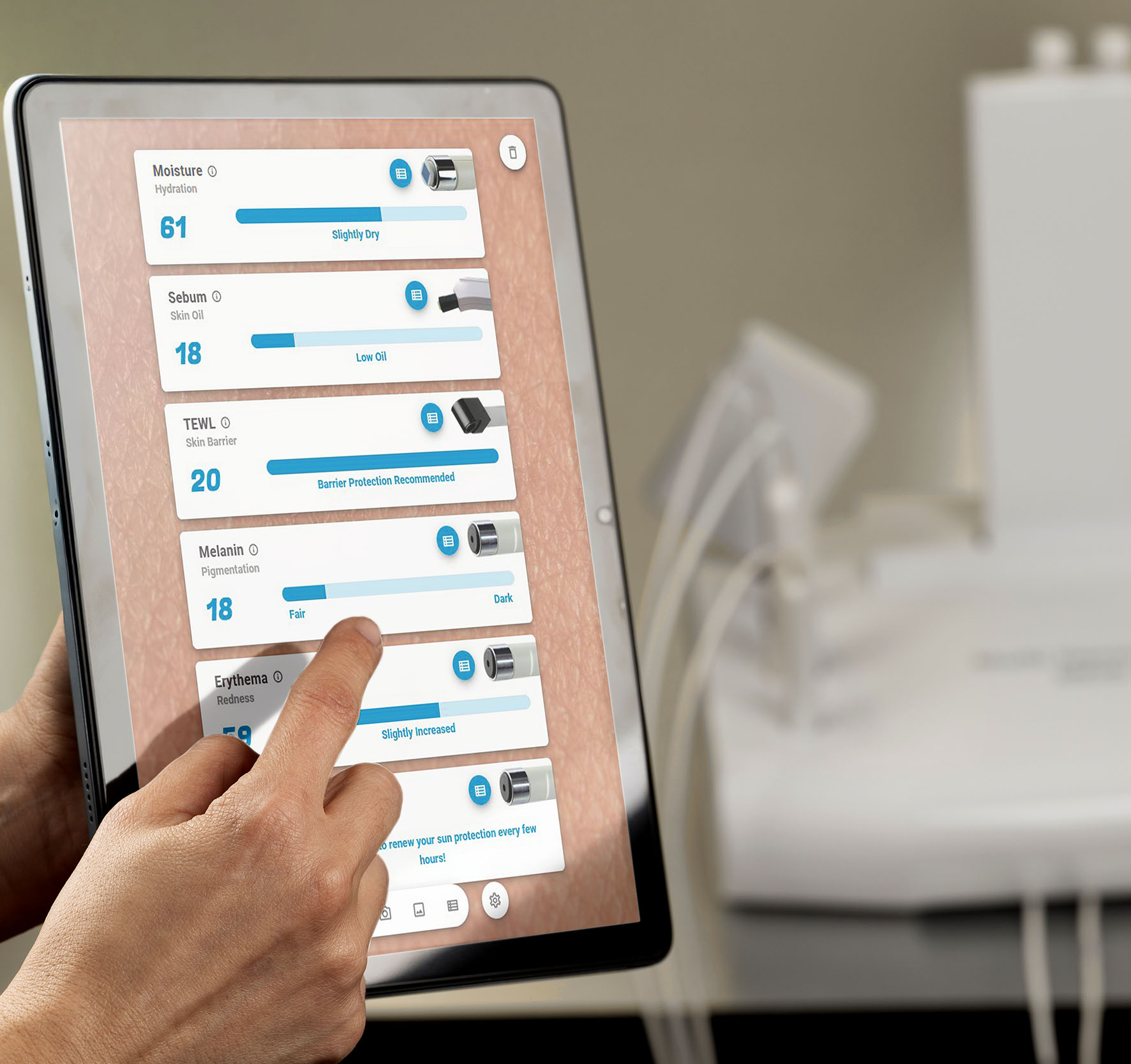 Das Multi Derma System MDS 3000 (Nachfolger des erfolgreichen MDS 1000) ist eine hochmoderne, leistungsstarke Lösung für die professionelle Hautberatung und Behandlungsplanung. Es ermöglicht eine schnelle, intuitive und äußerst flexible Hautanalyse mit Sonden und Kamera(s) und unterstützt Sie dabei, Ihre Kundinnen und Kunden zu begeistern, Ihre Kompetenz zu demonstrieren, Vertrauen aufzubauen und den Verkauf kosmetischer Produkte durch wissenschaftlich fundierte Beratung deutlich zusteigern.